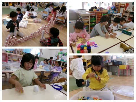 他にも,粘土や紙コップでも楽しんでいた子どもたちです。