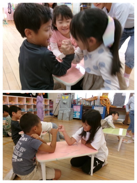 「腕相撲大戦や!!」お互い目を見て「レディーゴー!!」(≧▽≦)