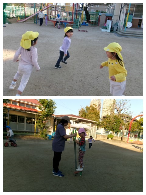 「○○ちゃんがんばれー!」と友達を応援したり,後ろの友達を気にしながらスピードを調節したりと,子どもたち同士のかかわり合いが運動会を経てまた変わってきた様子を実感しました。みんなでつながって嬉しかったね♪