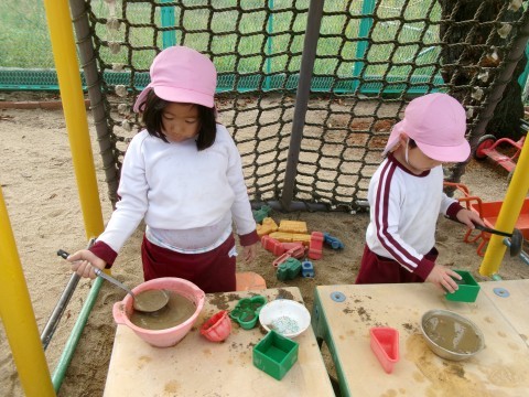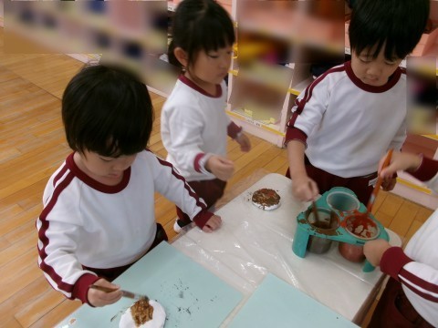 今日は,戸外で遊んだり,部屋では,ハンバーガーの具をみんなでつくりました