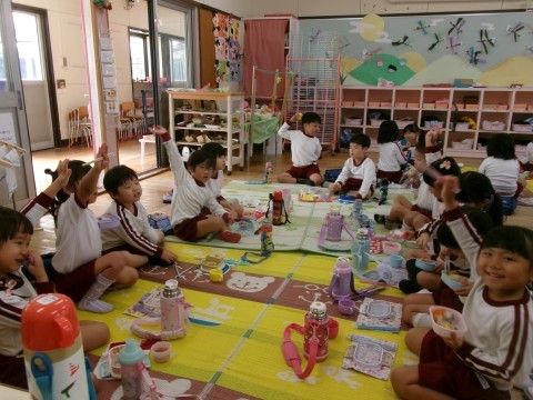 弁当時には,「○○がすきなひと?」とみんなで質問をし合ったりして楽しくご飯を食べましたよ♪