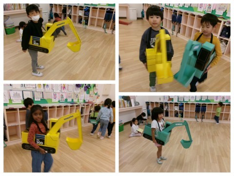 保護者の方から手作りのショベルカーを2台もいただきました!