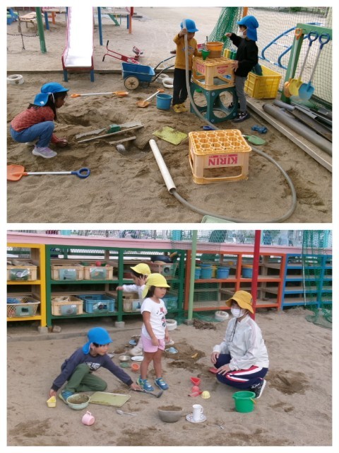 今日は,戸外でたくさん遊び,かぶの種も植えました
