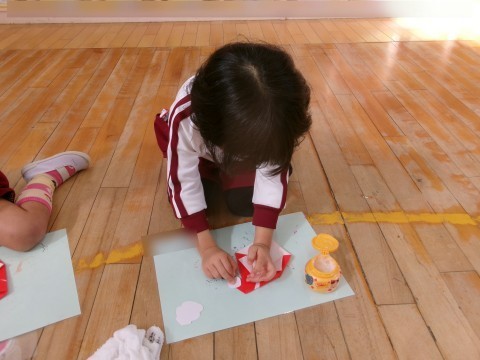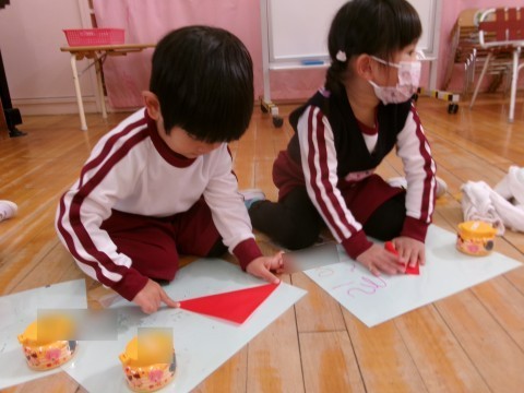 幼稚園に戻ってからは,クリスマスツリーの飾りをつくりました。「プレゼントをつくる~」「サンタさんも飾りたい」と子どもたちがそれぞれ,自分のつくりたいものを考えてつくることを楽しみました。