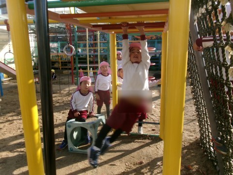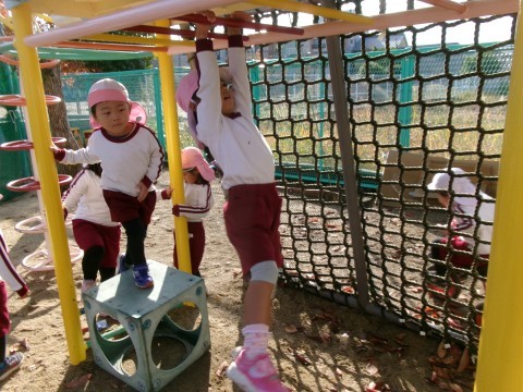 朝の自発活動では,「見て-!」と雲梯をしているところを見せてくれました。手の力が強くなって,踏み台がなくてもできるように!友達がしている姿を見て,「僕もできる!」と見せてくれました。