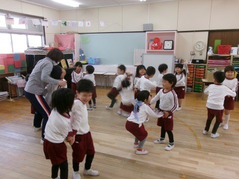 保育室では,生活グループを決めなおしました。新しいグループの友だちと一緒になべなべそこぬけをしたりして,仲良くなった後は,グループ名を決めました。今回は,国の名前で考えました。国旗の絵本を見ながら,「何グループがいいかな?」と友達と話し合って決めることができたね😊