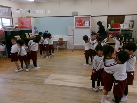 お片付けの後は,ラナンキュラスの球根を植えました。ラナンキュラスの球根は,タコの足みたいでとても面白いです😊植木鉢に手で土を入れて,球根を植えたら,お水やり!「早く芽が出てきてほしいな!」と言いながらお水をやっていました。明日からお世話頑張ろうね♪