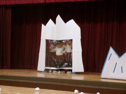 まだまだ,劇遊びは制作途中です。遊んでつくってを繰り返し,一つの物語が出来上がっていきます。