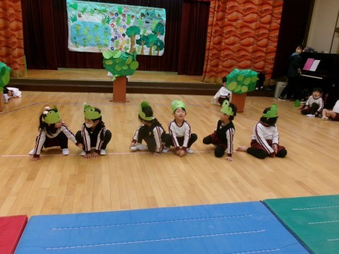 明日は『げきあそび』本番ですね(*^▽^*) 一杯ご飯を食べて,いつもより早く寝て元気パワーをいっぱいためて幼稚園に来てね!!