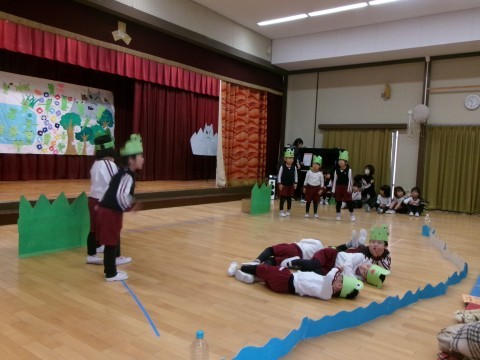劇遊びは「おうちの人にかっこいいところを見てもらおう!」と張り切っていますよ。