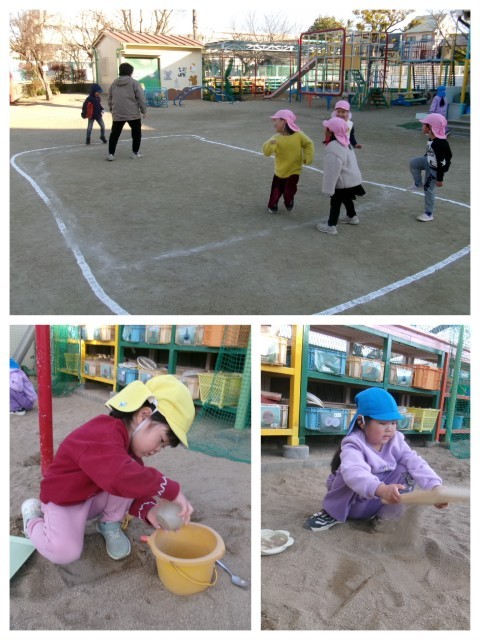 逃げれる範囲を決めての鬼ごっこをしてみたり,何個も穴を掘ってトンネルを作ってつなげてみたり,お外遊びを満喫しました(*^-^*)