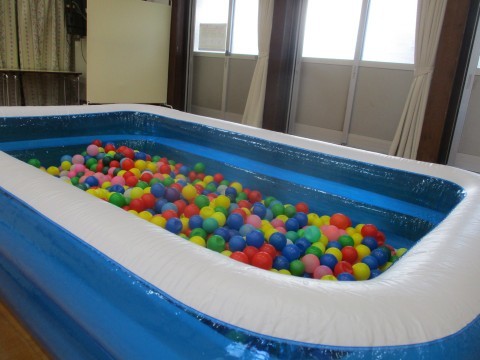 今まで模造紙上で、こなしお絵の具を楽しんでいましたが、昨日、初めてビニール素材という新しい素材の上で、こなしお絵の具を楽しみました。今日、ビニールの上のこなしお絵の具はどうなっているか子ども達と一緒に見てみると「やっぱり固まってる!」「多いところはまだだった!」と、予想が大当たり(^o^)繰り返し遊んでいく中で、こなしおが少ないところは乾く、多いと乾きにくいということにも少しずつ気づき始めている子もいました。固まったこなしお絵の具を触ると、ビニールの上はパリッと取れやすく、次にまた遊ぶためにもみんなでこなしお絵の具の欠片を集めることに(^o^)「うわあ!きれい!」「もっと集めよう」と、夢中になって欠片を集める子ども達♪透明のカップに入れると、パステル色のいろいろな色が混ざってとてもきれいでした。柔らかい部分も、ジュースカップに集めていくと、ぶどうジュースのようになりました。いろいろ形が変わり遊びの変化がおもしろいこなしお絵の具。