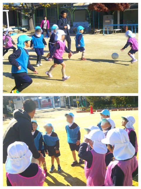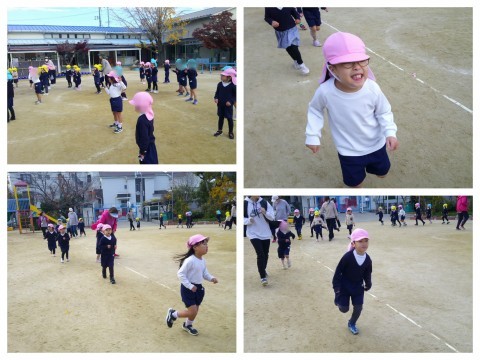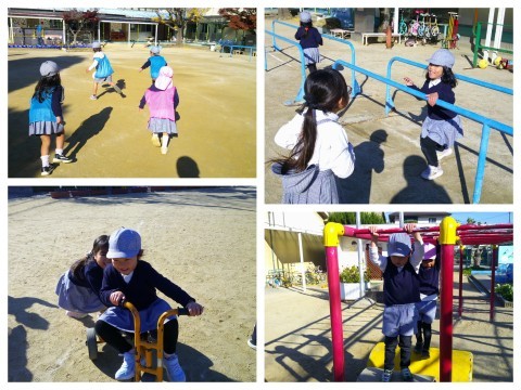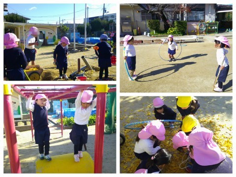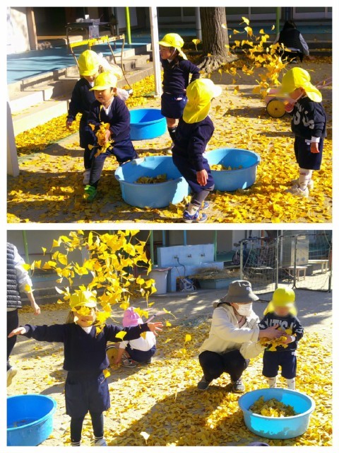 今日は朝からたっぷり自分の好きな遊びを楽しんだ子ども達。モミジの種を発見!種に羽のようなものがくっついている様子に興味深々で、友達と一緒に集めていましたよ。紅葉した葉を集めるなど、秋を感じて遊ぶ姿が印象的でした。片づけの後は、みんなで「だるまさんがころんだ」をしました。しっかりと掛け声を聞いて、真剣な表情で身体を止める子ども達。動いてしまったらまた初めの場所からスタートです。「最後までいくぞ!」とやる気満々でした。