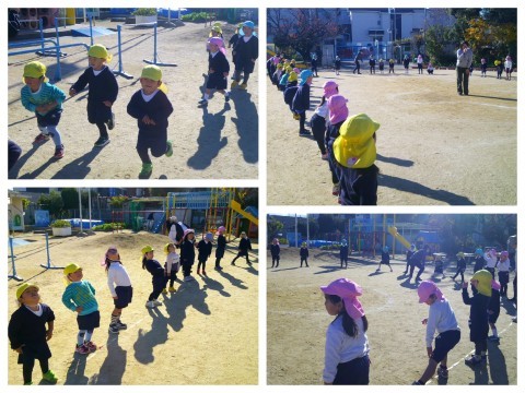 午後からは、縄跳びで遊びました。初めて持つ子もいて、まずは置いた縄跳びを跳んだり、ヘビみたいにゆすってみたりして遊びました。その後は、片手に縄をもって回したり両手で回して跳んでみたり、走りながら縄を回したり♪汗をたくさんかいて遊んでいましたよ☺中々すぐには跳べず、難しい…と言っていましたが、毎日やるぞ!と言っている子もいました。継続して取り組んでいこうと思います。