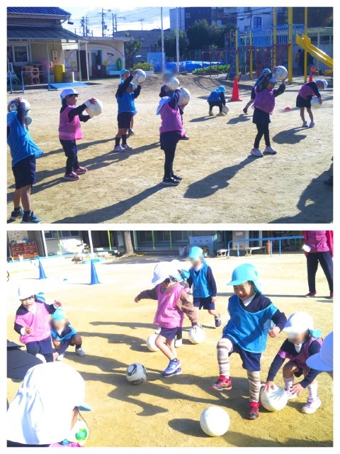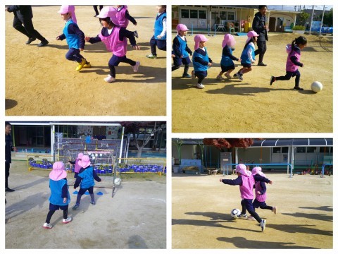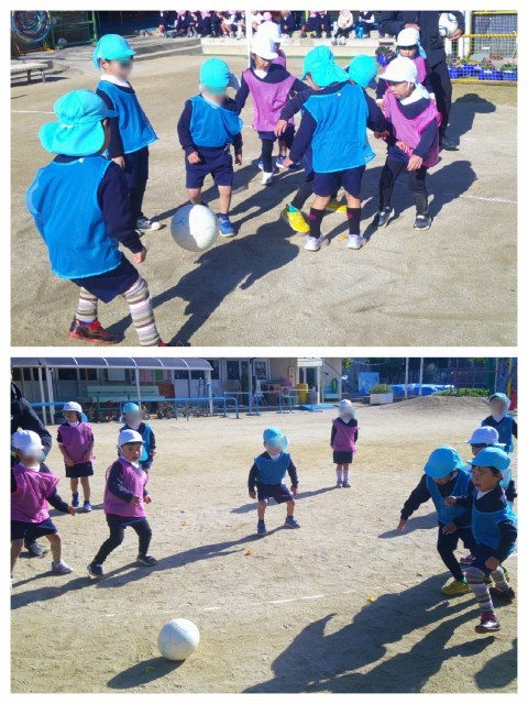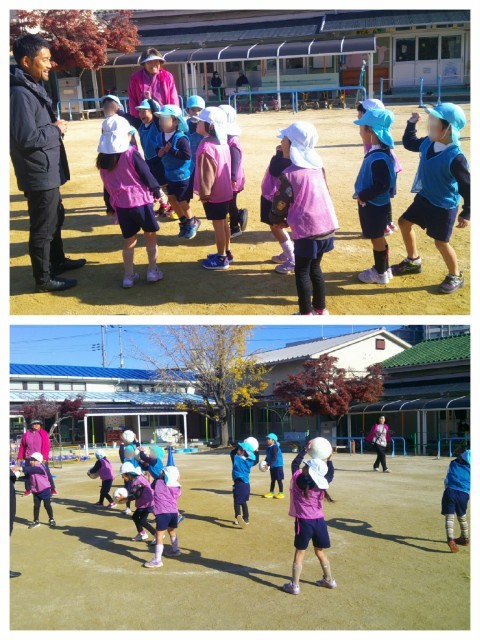 昨日みんなでしたドッヂボールが楽しかったようで、今朝も登園するなり「先生!今日もみんなでドッヂボールしようや!」という声があちこちからあがりました。今日もやってみると、昨日よりもボールの投げ方やよけ方、投げるまでのスピードなどがどんどん上手くなっていっていました。ギリギリまで勝敗が分からず、勝ったり負けたり、とても良い勝負になっています。楽しかったようでお弁当の後もみんなで集まってドッヂボールが始まっていました。また来週もしようね♪