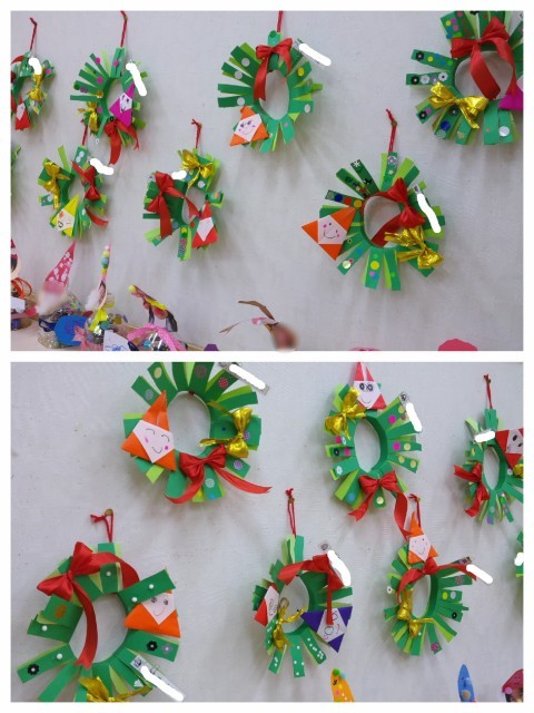 今日は、壁面に飾る雪だるまを作りました。白い画用紙を雪だるまの形にチョキチョキ✂“チョキチョキ回す チョキチョキ回す”と言いながら、はさみを動かしながら紙をまわして上手に切っていましたよ。マフラーや帽子もつけて、好きな模様を描きました。とても可愛らしい雪だるまたちが出来上がりました⛄
