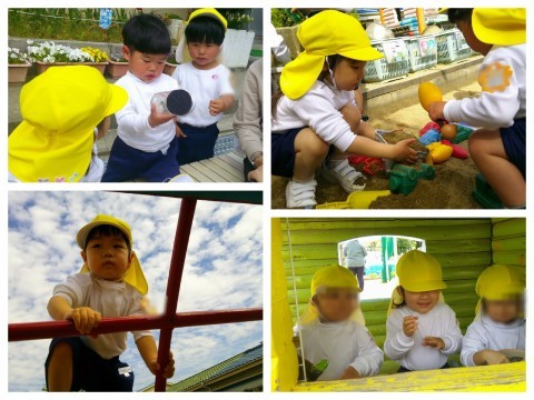 今日もたっぷりと園庭で遊びました。砂場では、車を走らせたり、ごちそうを作って「どうぞ♪」と持ってきたりしてくれました♪チューリップ花壇の前ではダンゴムシを発見!虫ケースに入れてじーと見たり、どこにいるか探したりしていました。遊びの途中のお茶休憩では、自分でコップにお茶をいれて飲みます。こぼさないように慎重に♪上手に注いでいますよ☺お片付けをしてみんなで体操した後は、保育室に戻ってお休み調べをしました。今日はたくさんのお友達が名前を呼ばれると、「はい!」と返事をしてタッチしに来てくれました♪