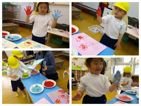 さぁ、みんなの手形やスタンプをした紙は何になるかな?お楽しみ~♪明日も元気に来てね(^^♪