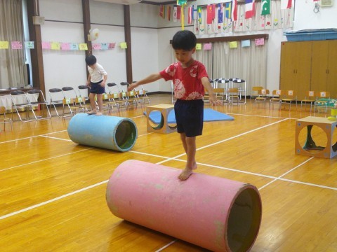 今日も朝から運動遊びにチャレンジ!「もうすぐ運動会!」「お家の人にかっこいいところを見てほしい」という気持ちが、子ども達の意欲をどんどんふくらませていっているようです。