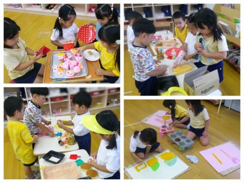 保育室では、お店屋さんごっこがまた楽しくなってきたり、誕生日パーティーを始めたり、友達と一緒に楽しむ姿が見られます。