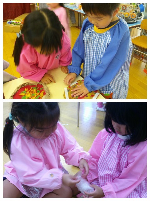 と、友達とのかかわりを楽しんだり刺激を受けたりしながら取り組む姿も見られます。一人では難しいことも友達と一緒ならできた!友達っていいな♪と感じているようです(^^♪