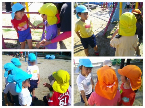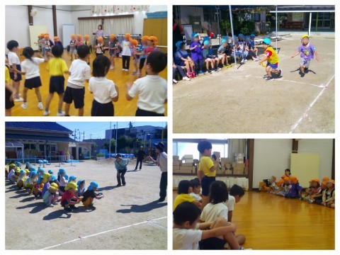 今日は津久野こども園の5歳児さんが幼稚園に遊びに来てくれました。まずはみんなでリレー!混合チームで1チームあたり14人もメンバーがいるので、追いついたと思ったら抜かされたり、また追い抜いたり…と白熱した勝負に大盛り上がりでした。リレーの後は園庭あそびも楽しみ、その中で同じ小学校に行くお友達との自己紹介も行いました。あっという間の1時間でしたが、楽しい時間となりました(^▽^)