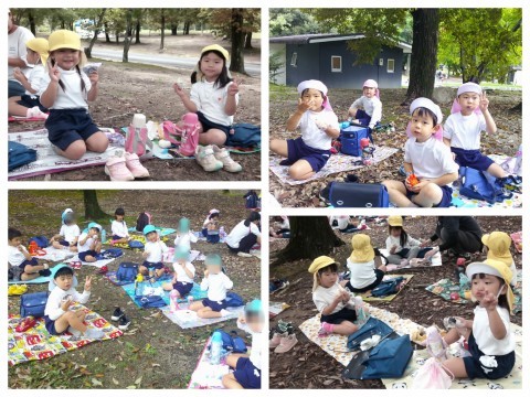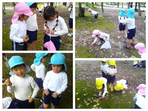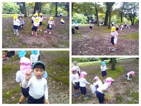 ニフレルで楽しんだ後は、万博公園に行って太陽の塔の横を通って、芝生でおにぎりとおやつを食べました🍙みんなで、外で食べると一段とおいしく感じますね(^^♪芝生周辺には、たくさんのどんぐりが落ちていて、どんぐりを拾ったり、かくれんぼをしたりして遊びました☺