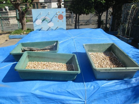 みなさん和気あいあいと手際よく進めてくだったおかげで、秋の味覚「銀杏」がタライ3つ分きれいに仕上がりました。