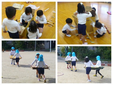今日はみんなでだんじりを片付けました。「乗っても引っ張っても壊れないだんじりにしよう」と頑張って頑丈に作っただんじり。本当に頑丈で、壊すのも一苦労でした。改めて「すごいものを作ったんやなあ」と噛み締めていました。