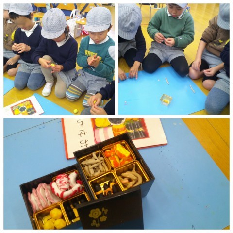 今日のおせちづくりは『ごぼう』と『伊達巻』です。おせち完成まであと4品!「月曜日と火曜日で完成やな」「水曜日の終業式でお家の人に見せてあげよう!」とはりきっています(^▽^)/