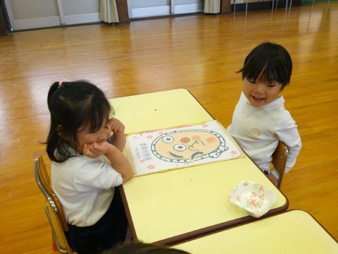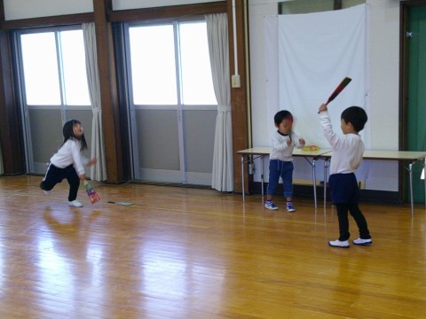 今日も元気に駆け足や好きな遊びを楽しんだたんぽぽ組の子どもたちです。遊んでいると徐々にぽかぽかして気持ちのいい時間でした。お正月遊びでは、かるた・羽子板・福笑い・コマなどを思い思いに楽しんでいましたよ。友達とルールを確認したり、遊び方を伝え合ったりして関わりながら過ごすことも増えてきましたね。年末年始、おうちでも楽しんでいただけたらと思います。