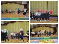 今日は、お部屋で楽しんでいる「3びきのこぶた」ごっこを広い遊戯室でしよう!言って、みんなでお家セットなどをもっていって遊び始めました。今日のこぶたたちは、公園に遊びに行きました。滑り台や、ブランコで遊んだり、ケンケンパしたり、元気いっぱいです。お家づくりも、やる気満々♪お腹を空かしたオオカミたちとの掛け合いは、ドキドキです。お家の窓から顔を覗かせるこぶたたちの姿が可愛らしく、オオカミたちは迫力満点でした。今日もお話の世界の中で、楽しんでいましたよ。先週から子どもたちが言っていたオオカミの耳も完成♪ より一層、つもりになって遊ぶ子ども達です。
