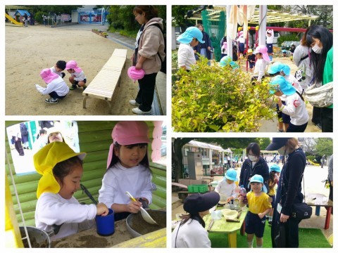 入園・進級して2週間が経ちました。今日は、初めての保育参加がありました。お家の人が来てくれるのをとても楽しみしていた子ども達♪身支度をすませて早速園庭に!