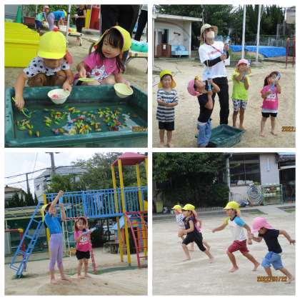 8月22日 今日のつくつくルーム 公開日 2022/08/22 更新日 2022/08/22 ホットニュース 今日も朝からとても良いお天気で水遊びは気持ちがよかったです。泡遊びではイチゴやオレンジ、レモン、メロンなどいろいろなジュースを作って楽しんでいました。お部屋でも好きな遊びを楽しんでいました。今日は3歳児さんもアイロンビーズを頑張っていましたよ。また、明日!