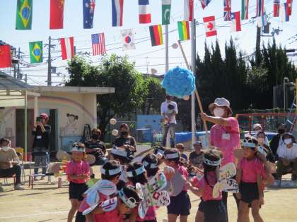 最後に風船がはがされ、両手を挙げきらきらするときの子どもたちがとっても笑顔でやりきった表情でした♪