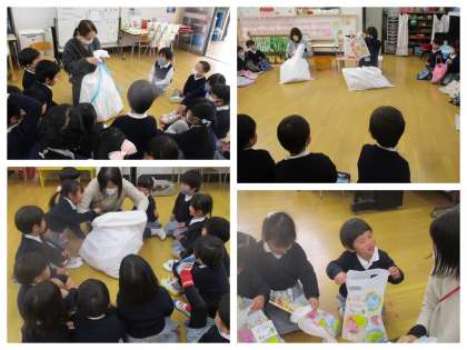 サンタさんに無事プレゼントをもらい、お別れをした後、トイレに行こうと廊下に出ると、園庭にソリの跡とトナカイの足跡が…!「あっちに向かっていったのかな?」「あ!空に飛んでいくサンタさんが見えた!」と想像力いっぱいの子ども達のキラキラした表情が素敵でした(^▽^)/
