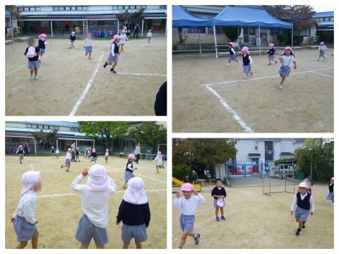 午後は、みんなでオニごっこをして遊びました。今日は、増えオニごっこをしました。捕まらないように必死に走る子どもたち。息を切らしながらももう一回!と、楽しんでいましたよ(^^♪またしようね!