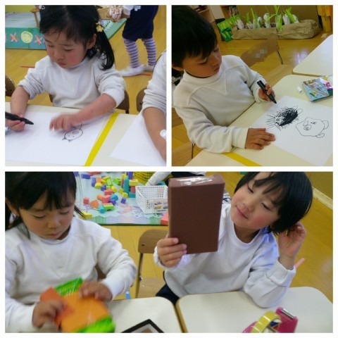 本日、節分制作も持ち帰っています。豆まきや恵方巻を食べるなど「節分」をお家でも楽しんでくださいね。