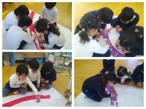 朝一番にみんなで劇中の場所の確認をし合った後は、劇で使う壁面づくり。そして遊戯室に行って劇あそびもしました。「忙しいわ~。めっちゃやることあるわ~(^^)」と言いつつ「まあ年長やから、いけるけどな♪」となんだか嬉しそうな表情です。素早く昼食を済ませ「外で遊んでくる!」と園庭に駆け出していく姿にもたくましさを感じます。