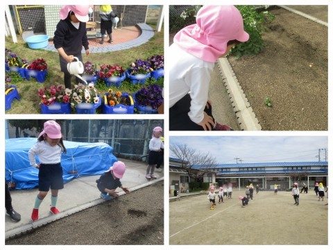 いよいよ修了式の週が始まりました。「あと〇日」と毎日カウントダウンしてきましたが、いよいよお別れが近付いてきていると実感し始めたのか「みんなでドッヂボールしよう」「リレーもしようよ」「コマ大会もやろう!」とすみれ組みんなでしたいことがどんどんあふれてきている様子です。