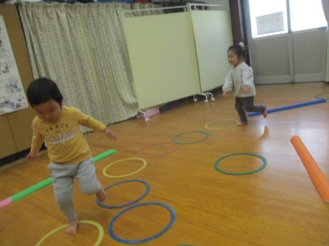 初回の方は保険代200円を持ってきてください。遊戯室では子どもたちは裸足になって遊ぼうと思います。動きやすい服装で来てくださいね!