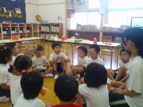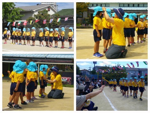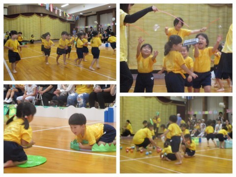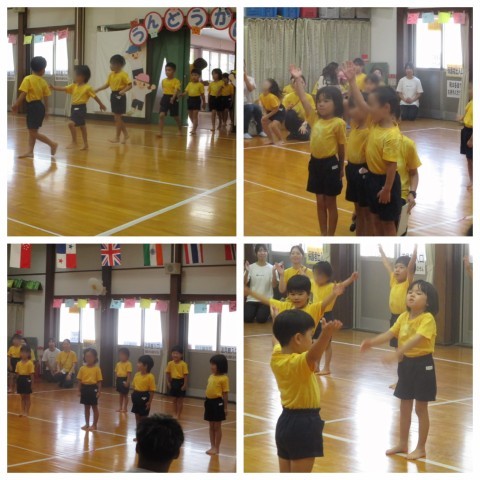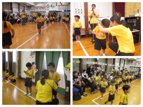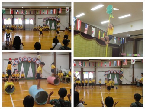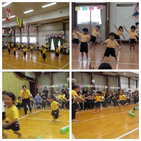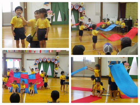 遊戯室に入ってからは、さすが年長組!緊張を良いエネルギーに変えて、今までで一番かっこいい姿を披露してくれました。自分達でも達成感を味わっていたようで、プログラムの合間に保育室に戻る度、「すごかったやろ?」「めっちゃ頑張ったで!」と生き生きした表情でした。