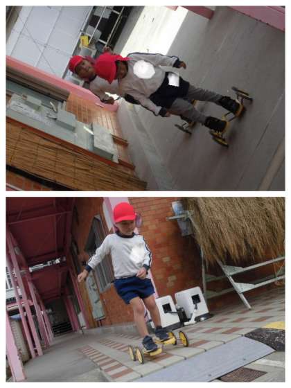 まだまだ子どもたちのチャレンジは継続中です。今日はバランスカーに挑戦!一人でもしっかりとバランスをとって進むことができるようになりました。「見てみて〜」と得意そうな子どもたち。様々な活動を通して達成感を味わっています。