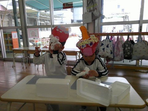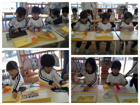 また、自分たちの役がわかるよう小道具も少しずつ制作しています。劇遊びが待ち遠しいね!