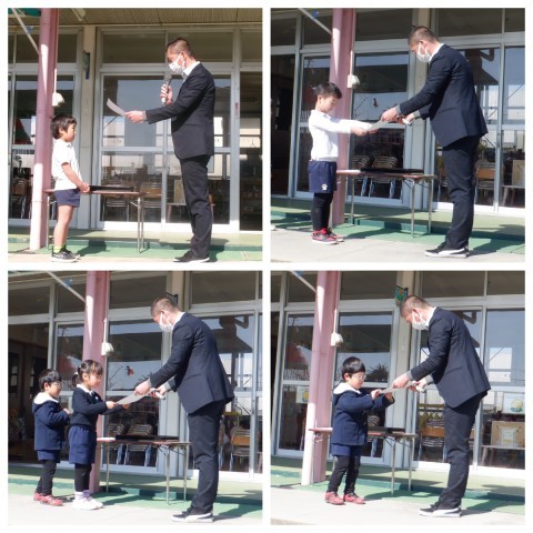 降園時に『堺市こども市展』の表彰式を行いました。朝から表彰してもらうことを楽しみに登園してくれたお友達もいましたよ。園長先生から表彰状をいただくと、とっても嬉しそうな子ども達でした。これからものびのびと自分なりに表現することを楽しんでもらいたいと思っています。