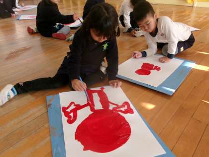 その後に絵の具で自分のおなかのなかの鬼を描きました。寝そべっている鬼など、色んな鬼がいます。また続きが楽しみですね。