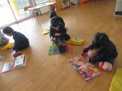 物語や文字に興味をもったり、少し長いお話の絵本を見たりできるようになってきました。