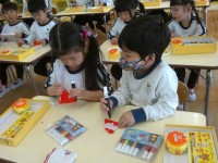 はじめは「もっと乗りたい~」と言っていた子も、お友達に譲ってあげて、ちゃんと待っていると、自分の番が来てまた交代してもらえるということが分かると、きちんと待ってくれるようになりました。毎日の遊びの中で「お友達と交代して遊ぶ」ということを少しずつ分かってきてくれています。人とのかかわり方を一つずつ学んで大きくなっている子ども達です☆