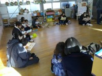 園長先生からのお楽しみは音のクイズでした。何の音かな?みんなで考えて楽しんでいました。みんなでのお楽しみは、すみれ組が保育室で遊んでいる『ロケットに乗ってゴー!』の遊びでした。みんなで遊んで楽しかったね!6月生まれのお友達、お誕生日おめでとう!これからも元気に大きくなってね。