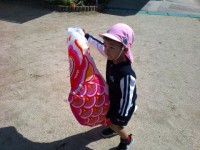 朝は、たくさん雨が降っていましたが夕方には止んだので、キュウリの収穫の順番が回ってきた預かり保育にいた子が、収穫しましたよ。高いところにできていたので、お迎えに来てくださったおうちの人に抱っこしてもらって収穫しました。大きなキュウリを収穫できてニッコリ笑顔でしたよ(*^▽^*)